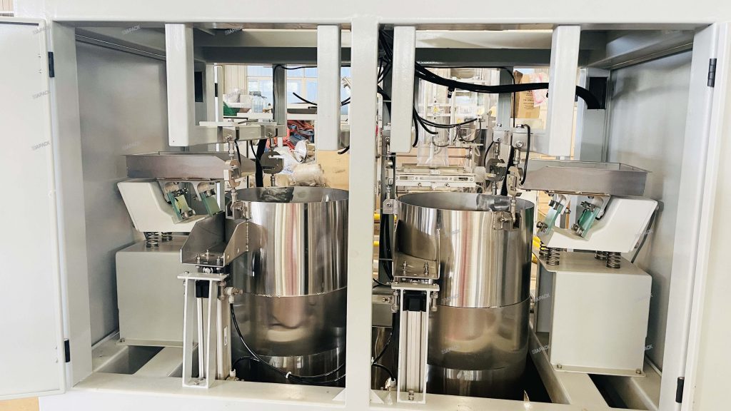 Þessi einingavél er sérstök hönnun fyrir umbúðir smáafurða eins og hnetur, döðlur, franskar, trékúlur, áburð og svo framvegis. Allur vélbúnaðurinn er úr SUS304. Þar á meðal er vöruvogunarvél, VFFS pokamyndunarvél með þéttibúnaði, einn pallur fyrir vogunarvél og úttaksfæriband til að flytja fullunna poka. Samkvæmt kröfum viðskiptavina getum við bætt við handfangsgötunartæki.