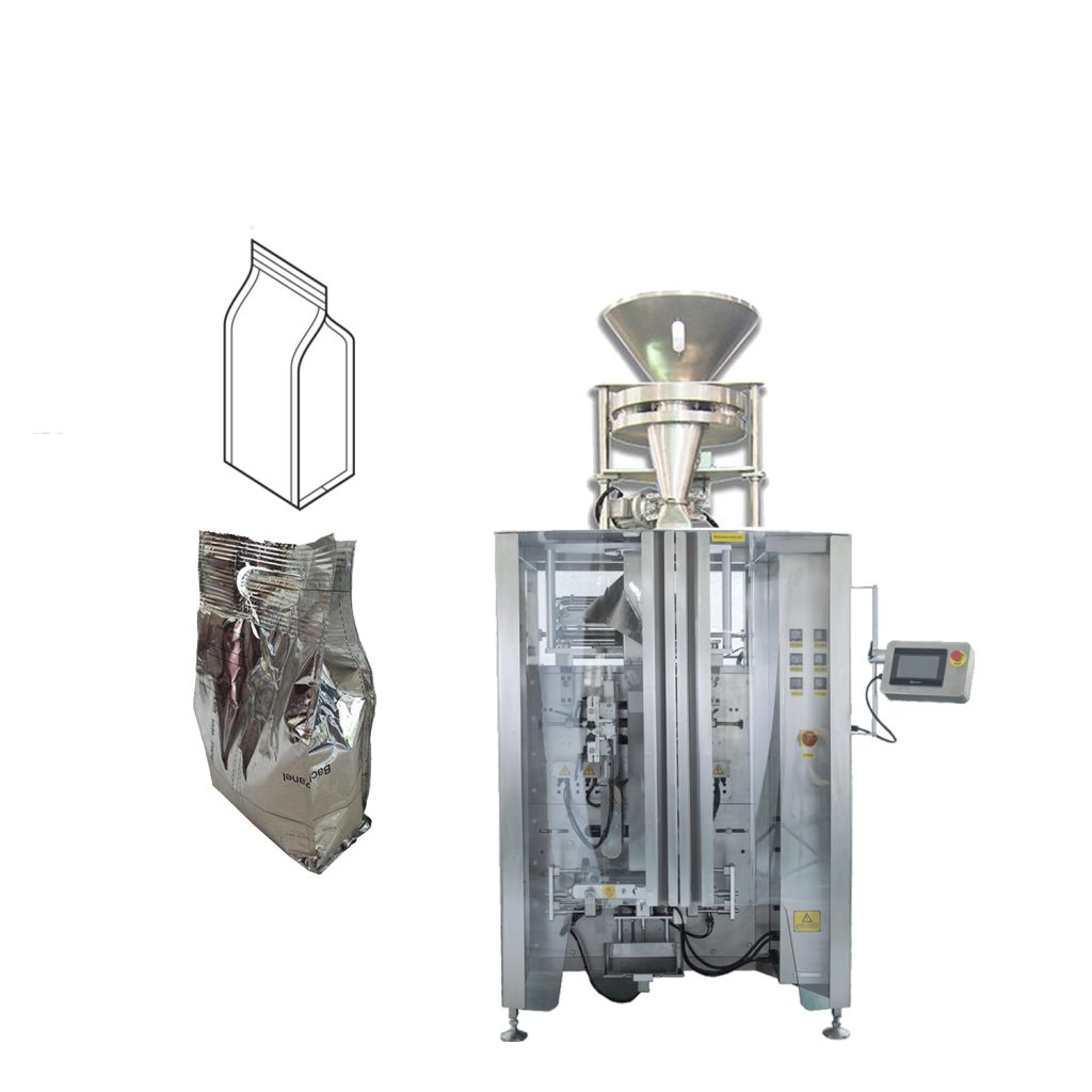 3.Notaðu sérstaka poka sem er fyrrum með mjög lóðrétta innsigli, sem getur búið til 4 hliðarferða með sléttu járni. Eftir að búnaðurinn hefur verið settur í búnaðinn getur hann staðið upp með solidum pokanum.