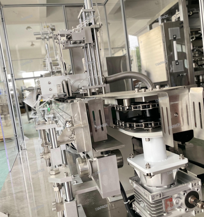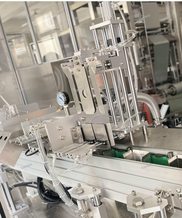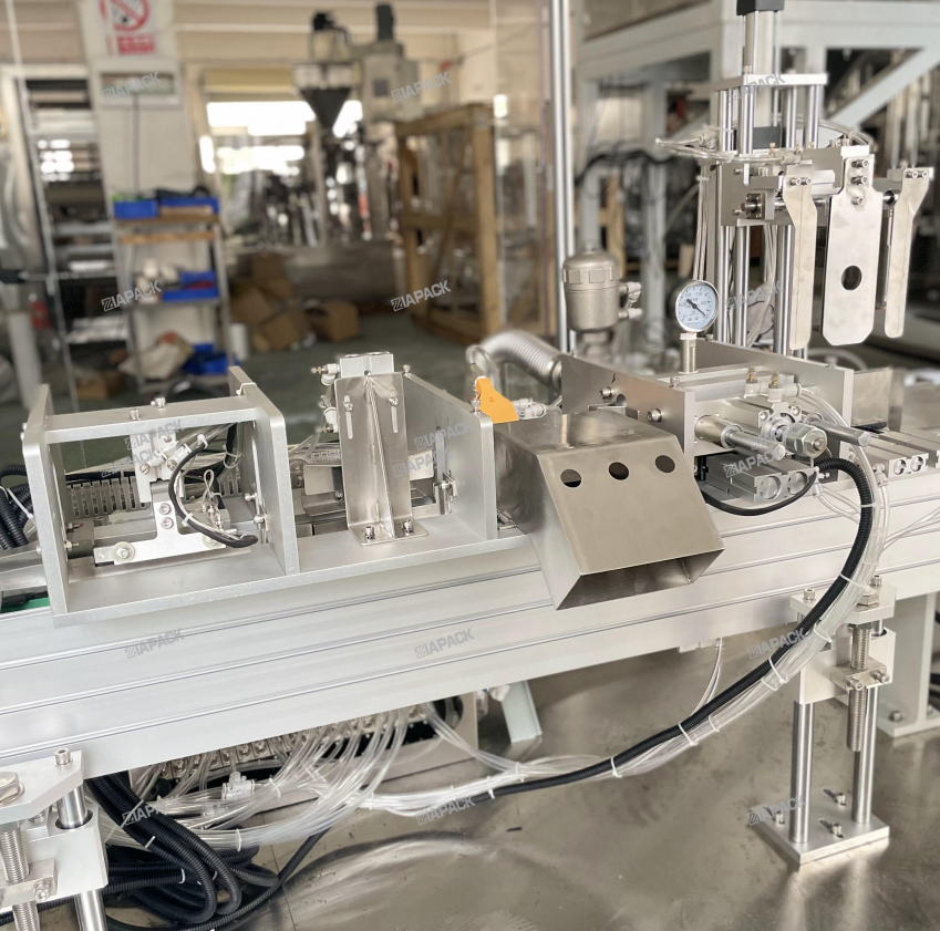 Þessi vél er sérhönnuð til að búa til töskupokann með toppmerkingum .Eftir að fullur poka með vöru falli á þessa vél .Þessi vél mun bera pokann, fara í gegnum munnfellingu poka í eitt skipti og líma síðan merkimiðann. SUS304 .PLC og snertiskjár samþykkja af Siemens vörumerki .Og Pneumatic hlutar samþykkja SMC vörumerki .Aðal rafmagnsíhlutir samþykkja Omron og Schneider vörumerki.Þessi vél er að vinna með sjálfvirkri pökkunarvél til að ná fullunnum poka efst merkingu.Þessi vél getur sjálfkrafa náð aðgerðinni af merkimiðanum aðskilið ,Label sending .Label skynjari og merki pressa .