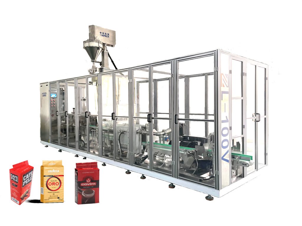 Þessi vél inniheldur eitt sett ZL520 lóðrétta poka til að búa til pökkunar- og innsiglivél. Eitt sett ZL2000 tvöfalda fötuvog, eitt sett ZL-100V tómarúmpökkunarvél og eitt sett úttaksfæriband. Þessi vél er mikið notuð til að pakka matvælaapótekum og öðrum vörum í dufti eða litlu korni. Eins og kaffiduft, gerduft og svo framvegis. Öll vélin tekur upp inni í að dæla til að lofttæma vöru. Tómarúmsstigið er mjög hátt og pökkunarhraði er mjög hár getur náð 15 poka/mín. Fullunnin vara er mjög góð og hefur langa hillu lífið.
