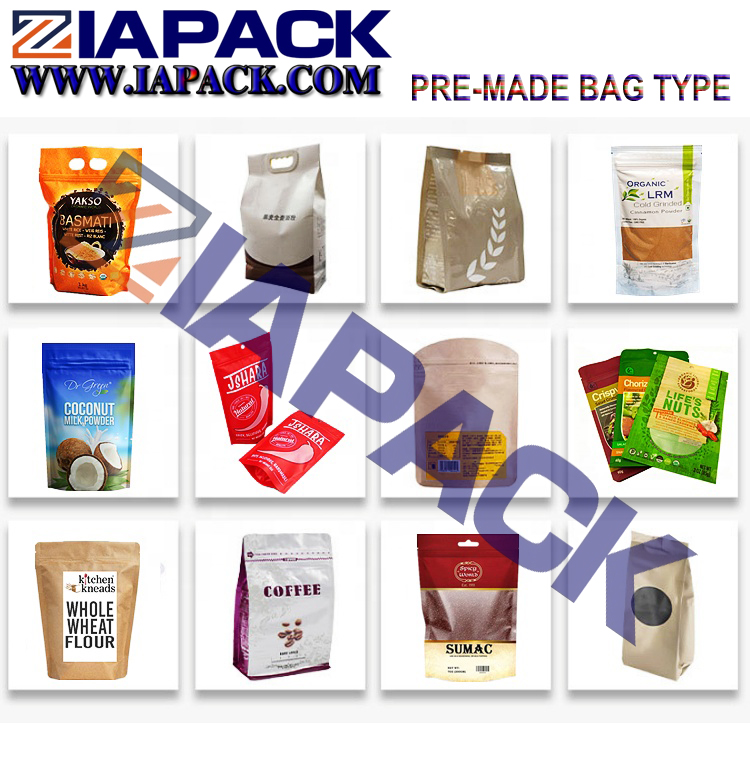 - Pakkningaefni: uppistandandi pokar, 3 hliðarþéttingarpokar, kúlupokar, flatbotna pokar, mótaðir pokar osfrv.
