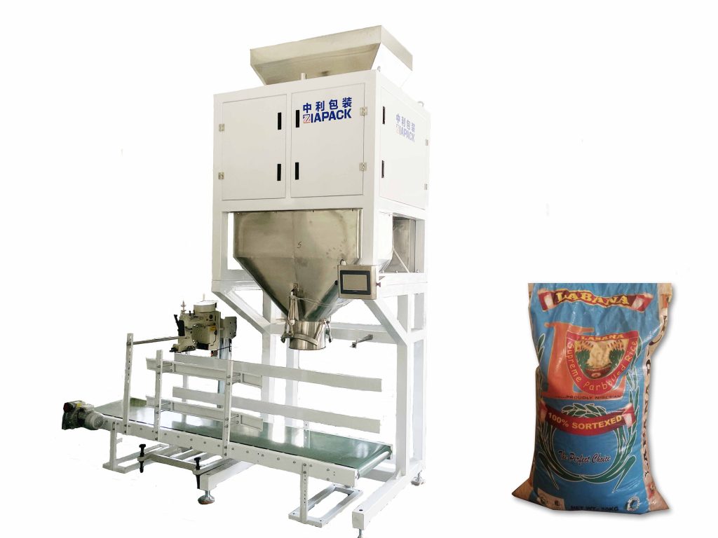 Þessi vélareining inniheldur eitt sett tvöfalda fötu vigtarvél til að mæla 30-50 kg. Eitt sett 3 metra úttaksfæriband, eitt sett PE poka hitaþéttivél og eitt sett jútupokasaumavél. Öll vélin getur sjálfkrafa klárað vöruvigtun, vörufyllingu, sjálfvirka pokasaumur og hitaþétting. Þarf bara að fóðra pokann handvirkt.