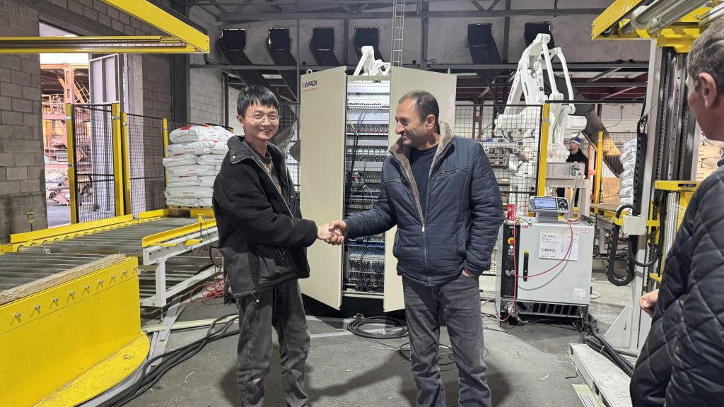 Þú ert hér: Heim » Fréttir » Tvær einingar af 25 kg sjálfvirkri vigtun, flutnings- og brettalínu fyrir gæludýrafóður byrja að keyra í verksmiðju viðskiptavina okkar.